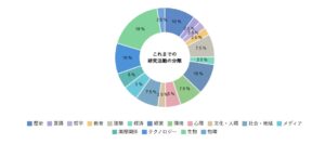 学問分野は、歴史・哲学などの人文科学、経営・教育・環境・心理などの社会科学、生物・物理などの自然科学とさまざまです。